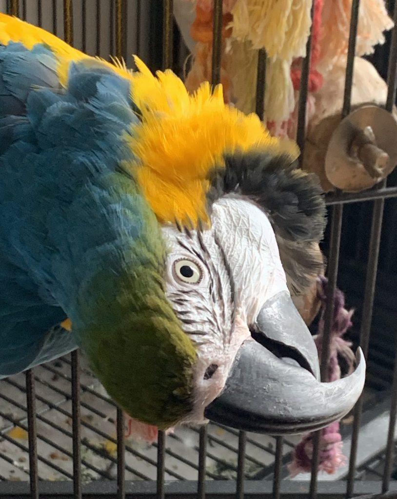 Bailey can be quite loud, he is a macaw after all, but not excessively. Ozzie is quieter. You do not hear a peep out of them between 8pm and 8am. When you say night night to them they both say ‘hello, hello, hello!’ in tandem like twins.