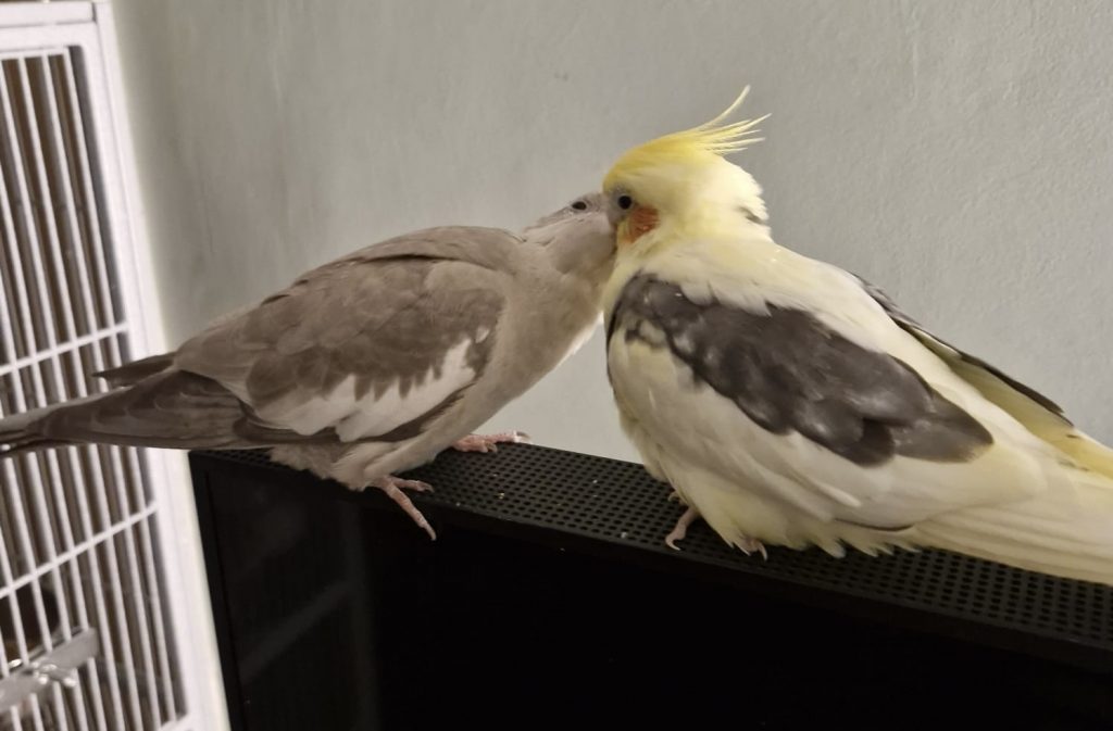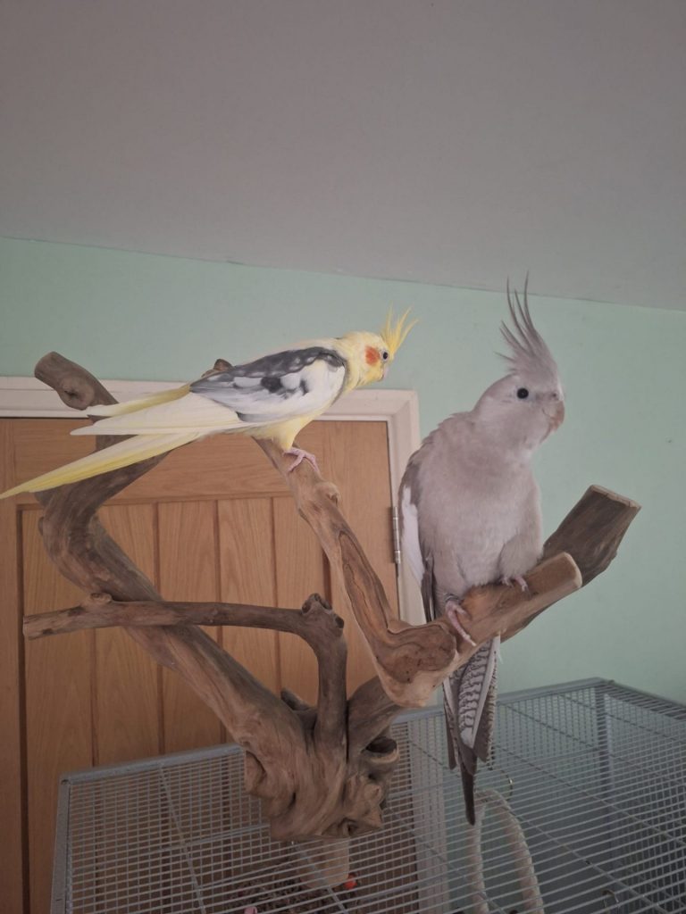 They have lived with other birds, (Teils and Budgies), but the boys can be very protective of Cinnamon. They are also used to dogs and have lived with them in both their previous home and safehouse.